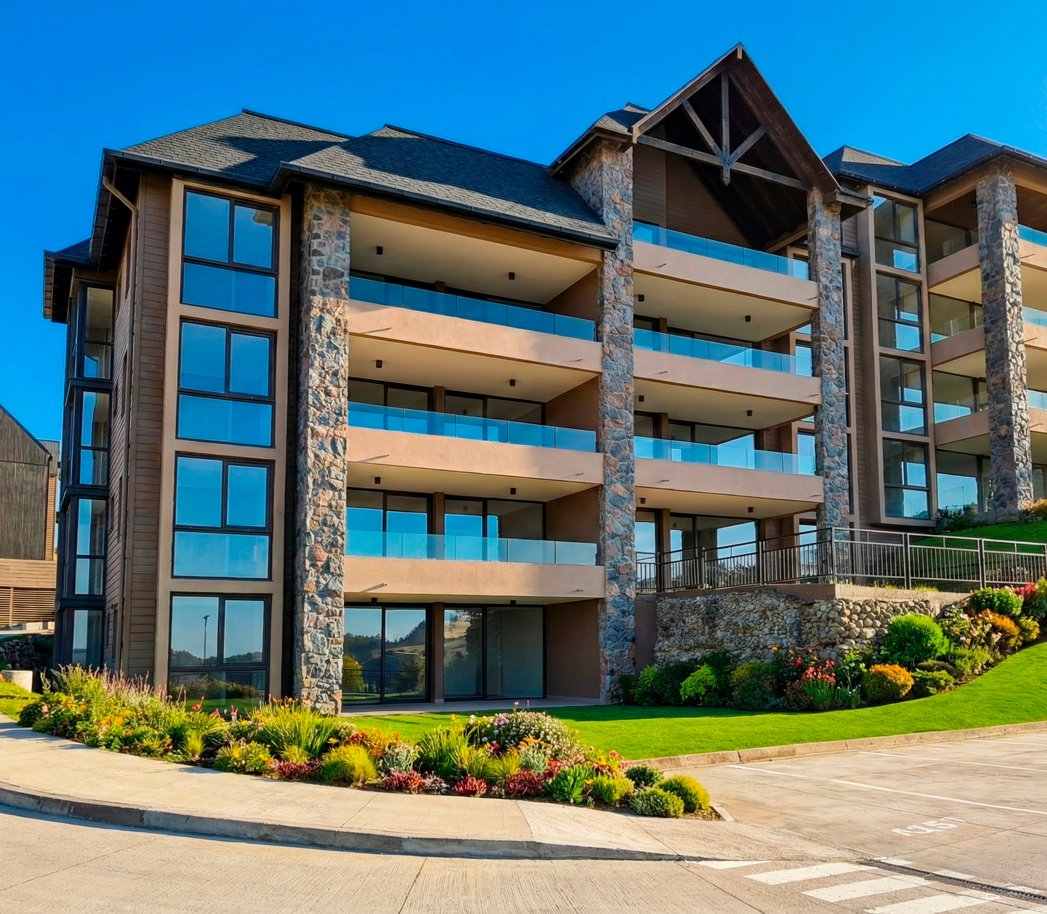 Los nobles materiales se unen en sus fachadas cálidas e imponentes, de esta forma se preservan las líneas arquitectónicas del sur de nuestro país.